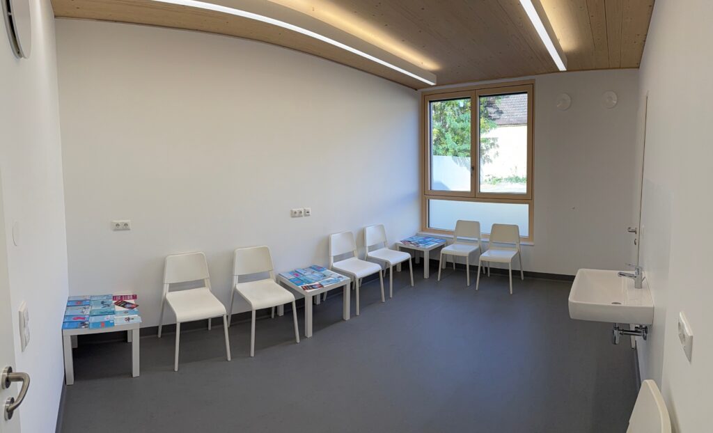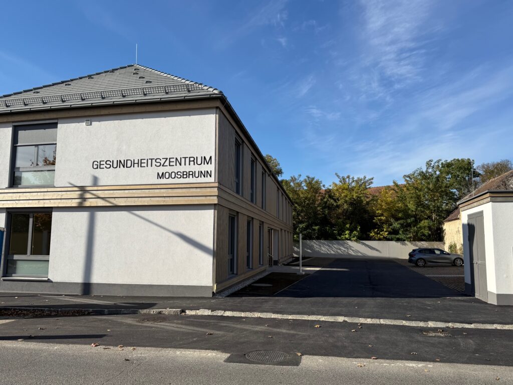 Die ersten Fotos der neuen Ordination Hier sehen Sie die ersten Fotos der neuen Ordination im Gesundheitszentrum Moosbrunn: Die Hausfront vom Innenhof Das Gesundheitszentrum von der Straße aus Der Eingangsbereich Das Behandlungszimmer Der Wartebereich Der Empfangsbereich Der Empfangsbereich